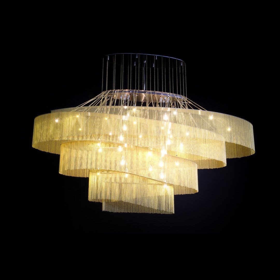The Elliptical Nebula is an elongated linear chandelier by willowlamp is inspired by the captivating spiral forms found in nature, from seashells to spiral nebula galaxies, spanning both the micro and macro cosmos, providing timeless beauty. Characterized by winding metal spirals that gracefully collapse under the weight of the chain, this design exudes elegance and dynamism. Artfully illuminated by a G4-LED system, the chandelier emits a warm, inviting glow, enhancing its sculptural beauty. Tailored and customized to specific environmental needs, the Elliptical Nebula chandelier offers versatility for various design projects, whether in hospitality or residential settings. Serving as a captivating focal point, it elevates any space with its striking presence. Designed by Adam Hoets in 2010, the Elliptical Nebula chandelier reflects willowlamp’s dedication to merging artistic inspiration with innovative lighting design.