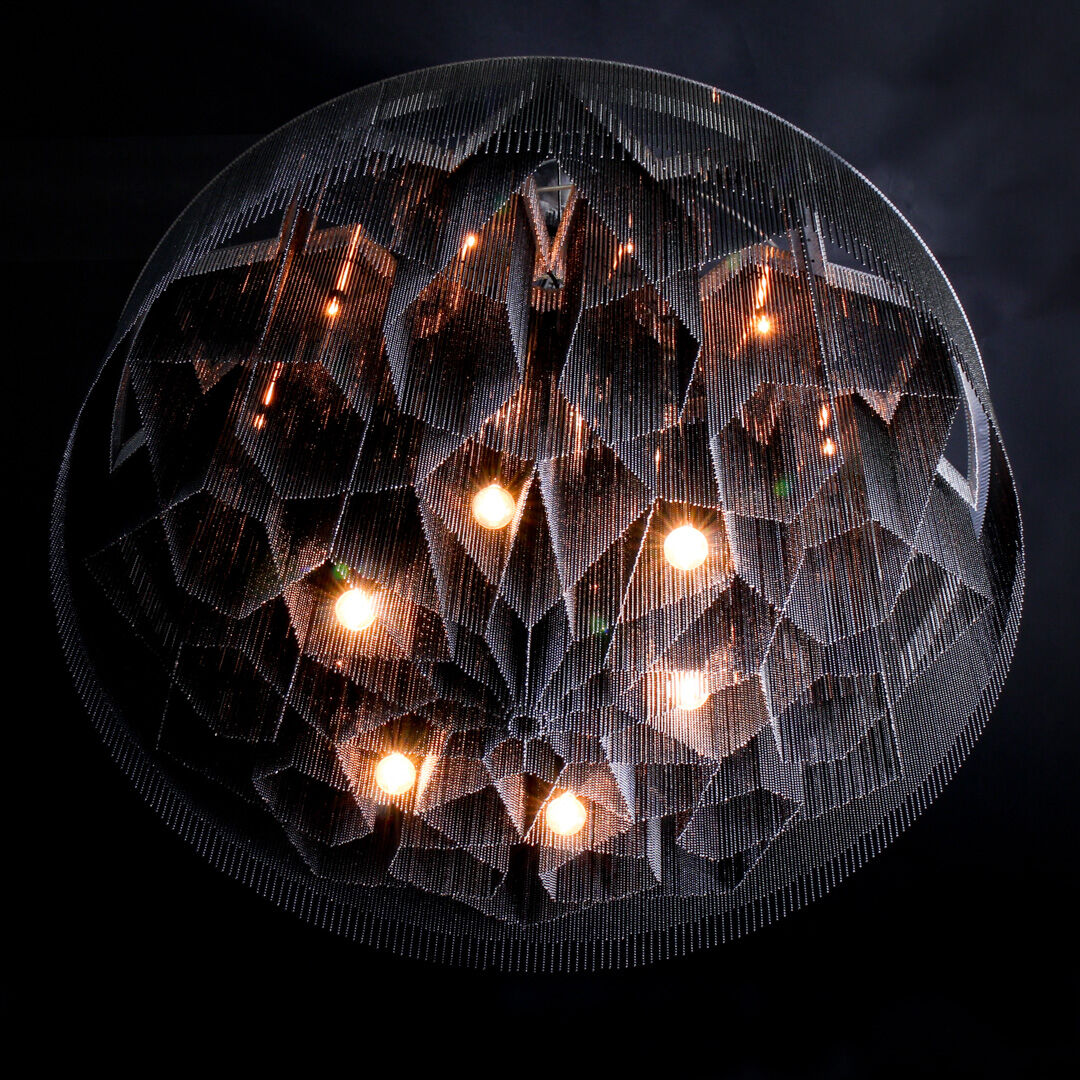 The Mandala No.2 chandelier by willowlamp is a refined addition to our collection of illuminated sculptural art forms, inspired by sacred geometry and Islamic patterns. This design offers a tapering shallower profile than the original Mandala No1, maintaining elegance in its proportions while ensuring that the intricate Islamic sacred geometry pattern is visible from any angle. The standard version is 1000mm in diameter and is available in both ceiling-mounted and suspended versions and it can be upscaled on request. This flexibility makes it an ideal choice for both hospitality and residential projects seeking a unique and captivating lighting solution. Designed by Adam Hoets in 2013, the Mandala No.2 chandelier exemplifies willowlamp’s commitment to merging artistic inspiration with innovative lighting design.