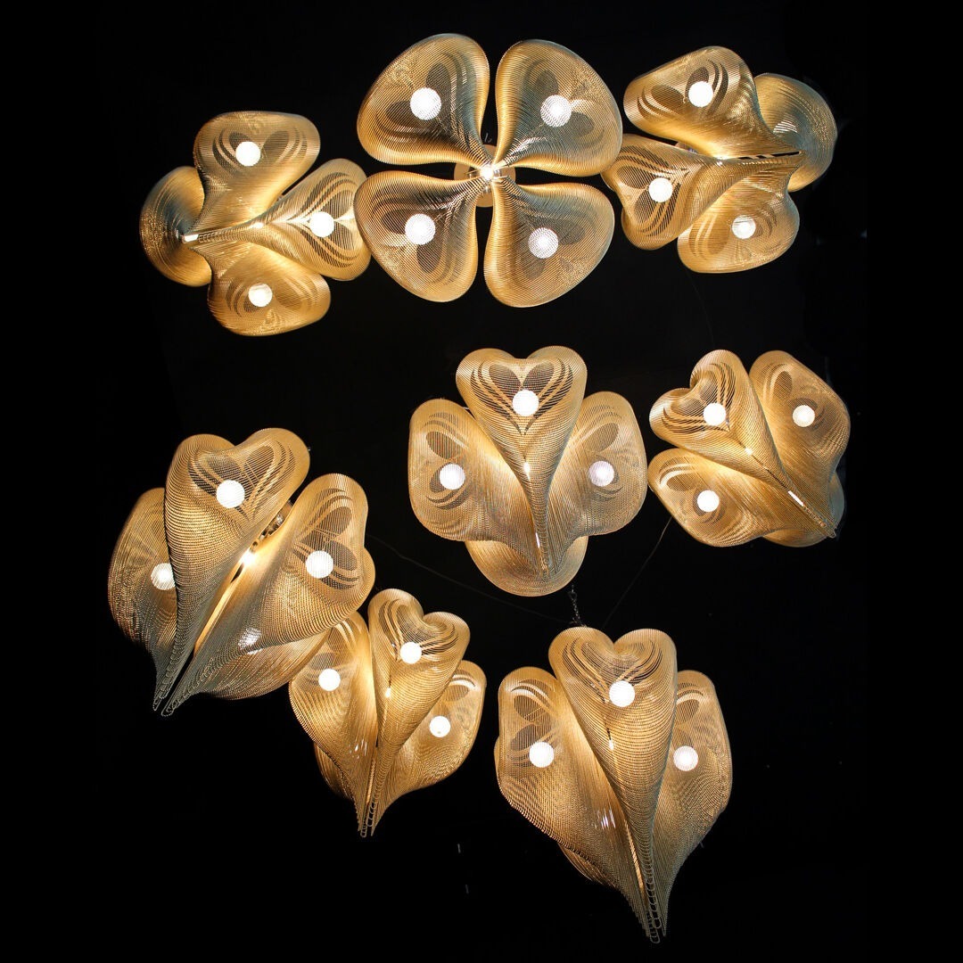 The BigLove Clover is a voluptuous and sensual chandelier, inspired by the iconic four-leaf clover and artfully translated into a heart-shaped design. This striking piece exudes both charm and elegance, making it a perfect centerpiece for any space seeking a touch of romantic allure.Illuminated by five G4 LED lamps housed in suspended Pyrex glass balls, BigLove Clover casts a warm and inviting glow, enhancing its surroundings with an intimate and enchanting ambiance. The design’s fluid lines and organic form create a captivating visual experience that draws the eye and stirs the heart. Available in a standard suspended 700mm diameter chandelier or wall sconce options, the BigLove Clover makes a striking statement when grouped en-masse. As always there are several finishes to choose from and custom-sized versions are available on request.Designed by Adam Hoets in 2017, Big Love Clover showcases willowlamp’s dedication to creating unique, artful lighting solutions that combine whimsical inspiration with sophisticated craftsmanship.